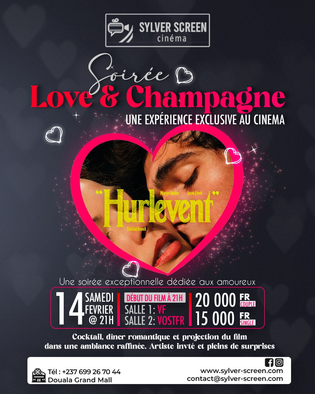 Le 14 février, se célèbre la St-Valentin, la fête des amoureux. A Sylver Screen Cinéma, une programmation spéciale orientée vers le romantisme attend les amoureux et même les célibataires en quête d’âme sœur. Le film « Hurlevent » en avant-première à cette occasion, permettra aux amoureux de renouveler leur flamme à l’être aimé, autour d’un dîner aux chandelles, accompagné de champagne et d’animation glamour.